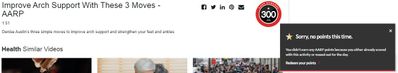 • I've reported this problem to AARP REWARDS and they keep saying I've received my points ,but each time I watch some of Her videos it says Sorry No Points.